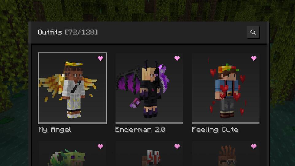 Outfits combine your favorite cosmetics and Minecraft skin into one, allowing you to quickly switch between your personalized styles.